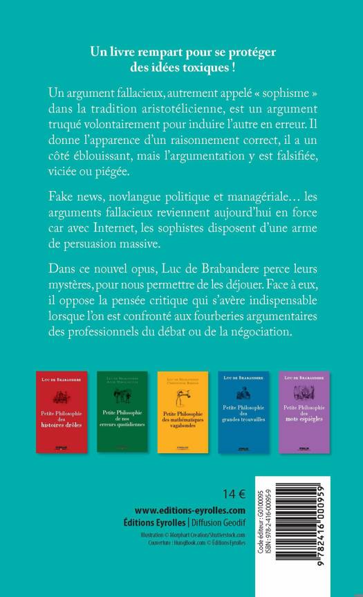 Dans ce nouvel opus, Luc de Brabandere perce leurs mystères, pour nous permettre de les déjouer. Face à eux, il oppose la pensée critique qui s'avère indispensable lorsque l'on est confronté aux fourberies argumentaires des professionnels du débat ou de la négociation.