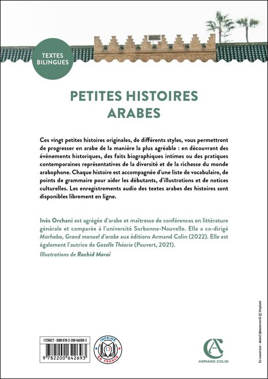 Ces vingt petites histoires originales, de différents styles, vous permettront de progresser en arabe de la manière la plus agréable : en découvrant des événements historiques, des faits biographiques intimes ou des pratiques contemporaines représentatives de la diversité et de la richesse du monde arabophone. Chaque histoire est accompagnée d'une liste de vocabulaire, de points de grammaire pour aider les débutants, d'illustrations et de notices culturelles. Les enregistrements audio des textes arabes des histoires sont disponibles librement en ligne.