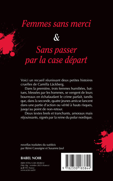 Voici un recueil réunissant deux petites histoires cruelles de Camilla Läckberg. Dans la première, trois femmes humiliées, battues, blessées par les hommes, se vengent de leurs bourreaux en échafaudant le crime parfait, tandis que, dans la seconde, quatre jeunes amis se lancent dans une partie d'action ou vérité à hauts risques, jusqu'au point de non-retour. Deux textes brefs et tranchants, amoraux mais réjouissants, signés par la reine du polar nordique.