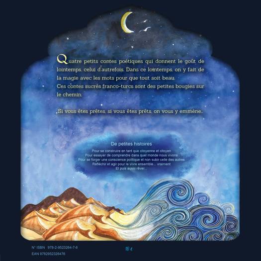 Quatre petits contes poétiques franco-turcs qui donnent le goût de lointemps, celui d'autrefois. Dans ce lointemps, on y fait de la magie avec les mots pour que tout soit beau. Ces contes sucrés sont des petites bougies sur le chemin. Les petits contes poétiques aux fruits font partie de la collection Penser avec le coeur. De petites histoires pour se construire en tant que citoyenne et citoyen, pour essayer de comprendre dans quel monde nous vivons, pour se forger une conscience politique et non subir celle des autres, pour réfléchir et agir pour bien vivre ensemble... et aussi rêver. Traduction de : Aytekin Karaçoban À partir de 6 ans.