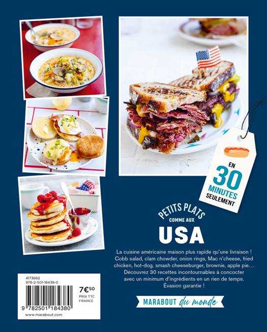 La cuisine américaine maison plus rapide qu’une livraison ! Cobb salad, clam chowder, onion rings, Mac n’cheese, fried chicken, hot-dog, smash cheeseburger, brownie, apple pie… Découvrez 30 recettes incontournables à concocter avec un minimum d’ingrédients en un rien de temps. Évasion garantie !