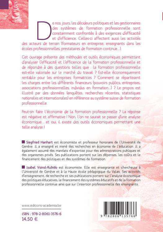 Cet ouvrage présente des méthodes et outils économiques permettant d'analyser l'efficacité et l'efficience de la formation professionnelle et de répondre à des questions telles que: la formation professionnelle est-elle valorisée sur le marché du travail ? Est-elle économiquement rentable pour les entreprises formatrices ? Comment se répartissent les charges entre les différents financeurs (pouvoirs publics, entreprises, associations professionnelles, individus en formation...) ?