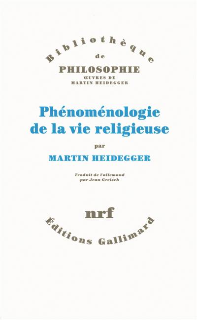 Sous le titre Phénoménologie de la vie religieuse, choisi par Heidegger lui-même pour remplacer le titre Phénoménologie de la conscience religieuse, l'ouvrage regroupe trois séries de textes : le cours "Introduction à la phénoménologie de la religion" professé durant le semestre d'hiver 1920-1921 à l'université de Fribourg-en-Brisgau et centré sur les épîtres de saint Paul ; le cours "Augustin et le néoplatonisme", professé pendant le semestre d'été 1921 ; un cours sur la mystique médiévale annoncé pour le semestre d'hiver 1919-1920, mais qui ne fut pas donné. Une phrase résume l'esprit dans lequel est conduite cette exploration : "L'autonomie du vécu religieux et de son monde doit être envisagée comme une intentionnalité absolument originaire, comportant un caractère d'exigence absolument originaire ; tout aussi originaire est sa teneur mondaine et axiologique spécifique." Ces textes très riches ne montrent pas seulement comment Heidegger a investi, en quelque sorte en "chargé de mission" de Husserl, le chantier de la philosophie de la religion qui, à l'époque, était une discipline en plein essor, en se servant des concepts centraux de la phénoménologie husserlienne. Il représente en même temps un jalon capital dans le développement d'une idée nouvelle de la phénoménologie que désigne le terme d'herméneutique de la vie facticielle.