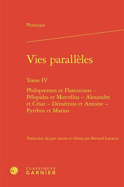 Vies paralleles. Vol. 4. Philopoemen et Flaminius, Pélopidas et Marcellus, Alexandre et César, Démétrios et Antoine, Pyrrhus et Marius