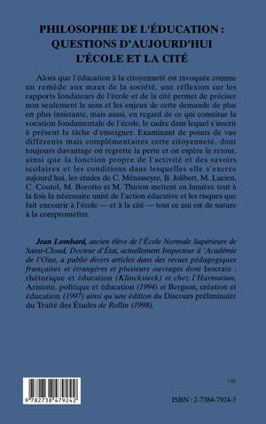 Alors que l'éducation à la citoyenneté est invoquée comme un remède aux maux de la société, une réflexion sur les rapports fondateurs de l'école et de la cité permet de préciser non seulement le sens et les enjeux de cette demande de plus en plus insistante, mais aussi, en regard de ce qui constitue la vocation fondamentale de l'école, le cadre dans lequel s'inscrit à présent la tâche d'enseigner.