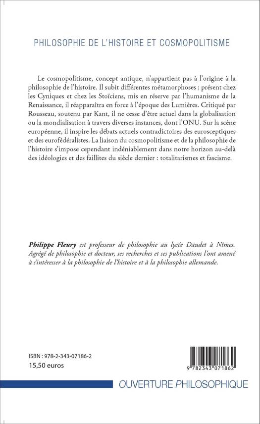 Le cosmopolitisme a subi différentes métamorphoses ; présent chez les Cyniques et chez les Stoïciens, mis en réserve par l’humanisme de la Renaissance, il réapparaîtra en force à l’époque des Lumières. Critiqué par Rousseau, soutenu par Kant, il ne cesse d’être actuel dans la globalisation ou la mondialisation. Sur la scène européenne, il inspire les débats actuels contradictoires des eurosceptiques et des eurofédéralistes. La liaison du cosmopolitisme et de la philosophie de l’histoire s’impose cependant indéniablement dans notre horizon.