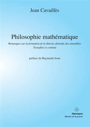 Préface de Raymond Aron Philosophie mathématique regroupe deux livres de Jean Cavaillès : Remarques sur la formation de la théorie abstraite des ensembles et Transfini et Continu auxquels a été ajoutée la correspondance intégrale échangée par Cantor et Dedekind révélée naguère dans son texte original allemand, par Jean Cavaillès ; on voit apparaître dans le dialogue de ces deux grands esprits mathématiques la plupart des idées fondamentales de la théorie des ensembles.