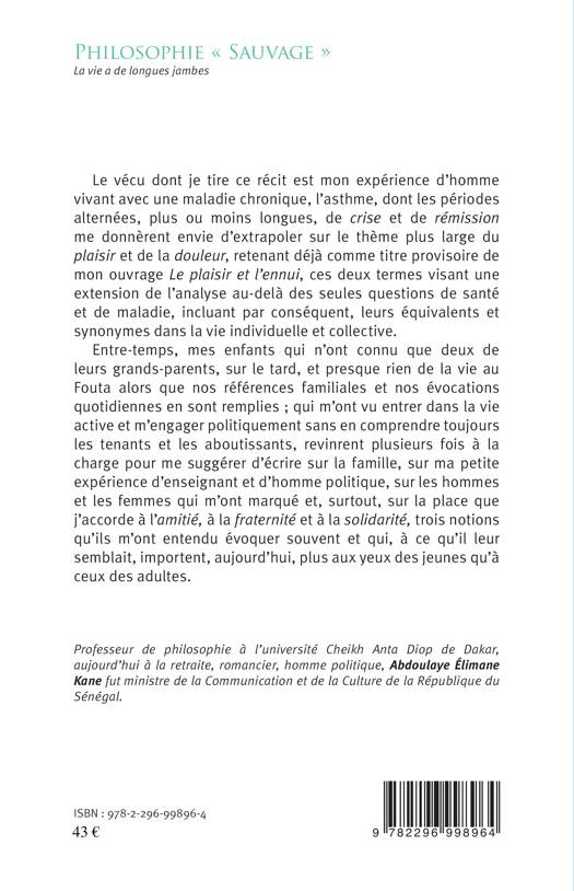 "Le vécu dont je tire ce récit est mon expérience d'homme vivant avec une maladie chronique, l'asthme, dont les périodes alternées de crise et de rémission me donnèrent envie d'extrapoler sur le thème plus large du plaisir et de la douleur. Entre-temps, mes enfants qui n'ont presque rien connu de la vie au Fouta, qui m'ont vu m'engager politiquement, revinrent plusieurs fois à la charge pour me suggérer d'écrire sur la famille, sur mon expérience d'enseignant et d'homme politique, sur les hommes et les femmes qui m'ont marqué."