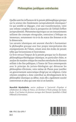 Quelles sont les influences de la pensée philosophique grecque sur la science des fondements jurisprudentiels islamiques ? Ce qui semble se dégager, c'est une transformation, voire une refonte complète dans la perspective de l'ijtihâd (l'effort jurisprudentiel). Phénomène équivoque car ces remaniements utilisent des concepts rétrogrades, contraires à l'éthique ou immoraux, notamment vis-à-vis du statut des femmes et de la démocratie. Les savants islamiques ont souvent cherché à harmoniser la philosophie grecque avec leur propre interprétation des enseignements de l'Islam, créant ainsi des écoles de pensée telles que l'avicennisme et l'averroïsme. Ce livre retrace l'impact de la pensée grecque sur le discours philosophique/théologique islamique, en particulier chiite, et analyse de manière critique les couches entrelacées de discours utilisés à des fins politiques, à l'instar de l'Iran contemporain avec le principe du juriste-théologien qui détourne les philosophies d'Aristote, voire même de Platon pour justifier un gouvernement autocratique dirigé par un religieux. Cette relation complexe a donc contribué au développement de la philosophie islamique au début, mais elle a également suscité controverses et abus qui sont mis ici en lumière.