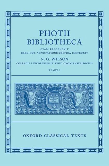 The Bibliotheca of Photius is an important resource for classicists, giving account of a number of texts now lost. The first volume of N. G. Wilson's edition covers the first 221 codices, with a detailed critical apparatus and apparatus testium.
