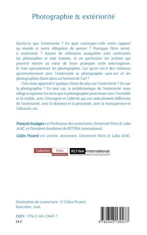 Qu'est-ce que l'extériorité ? En quoi convoque-t-elle notre rapport au monde et notre obligation de penser ? Qu'en est-il des relations qu'entretiennent avec l'extériorité la photographie sans-art et les photographies faites dans un horizon de l'art ? Cette problématique nous oblige à repenser les liens que la photographie peut nouer avec l'invisible et le visible, avec l'étrangeté et l'altérité, avec la distance et la proximité, la transparence et l'obstacle.