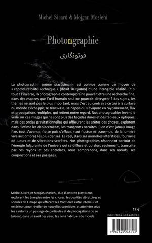 La photographie même plasticienne, est connue comme un moyen de « reproductibilité technique » (disait Benjamin) d’une intangible réalité. Et si tout à l’inverse, la photographie contemporaine pouvait être une recherche fine, dans des espaces que l’œil humain seul ne pourrait décrypter? Les sujets, les thèmes ne sont pas le plus important, mais c’est au contraire ce qui à la surface du monde s’échappe, se transvase, se nappe ou s’évapore en rayonnement, flux et propagations multiples, qui retient notre regard. Nos photographies lèvent le voile sur ces images qui ne sont plus des façades dures et des tableaux optiques, mais des ondes gravitationnelles qui effleurent les arêtes des choses, explorent dans l’infime les déplacements, les transports occultes.