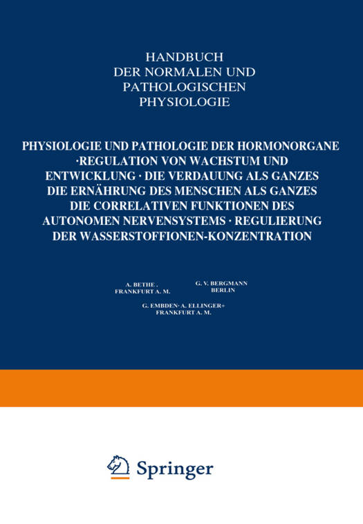 Physiologie Und Pathologie Der Hormonorgane; Regulation Von Wachstum Und Entwicklung; Die Verdauung ALS Ganzes; Die Ernährung Des Menschen ALS Ganzes; Die Correlativen Funktionen Des Autonomen Nervensystems; Regulierung Der Wasserstoffionen-Konzentration