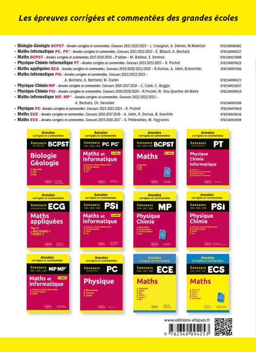 Annales corrigées et commentées de physique-chimie de la filière MP pour les années 2023 et 2024.