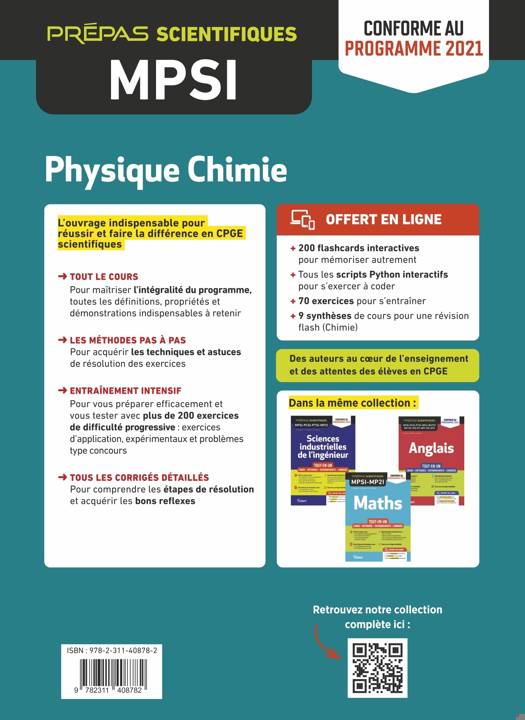 Conforme à la réforme. Un livre de physique et chimie complet et efficace pour faire la différence en prépas MPSI.