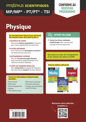 Conçu pour faciliter l'entraînement intensif avant les sessions de concours (écrits, oraux, TP) et tout au long de la deuxième année de classes prépas MP/MP*-PT/PT* et TSI 2, ce livre de physique propose, pour chaque point du programme :