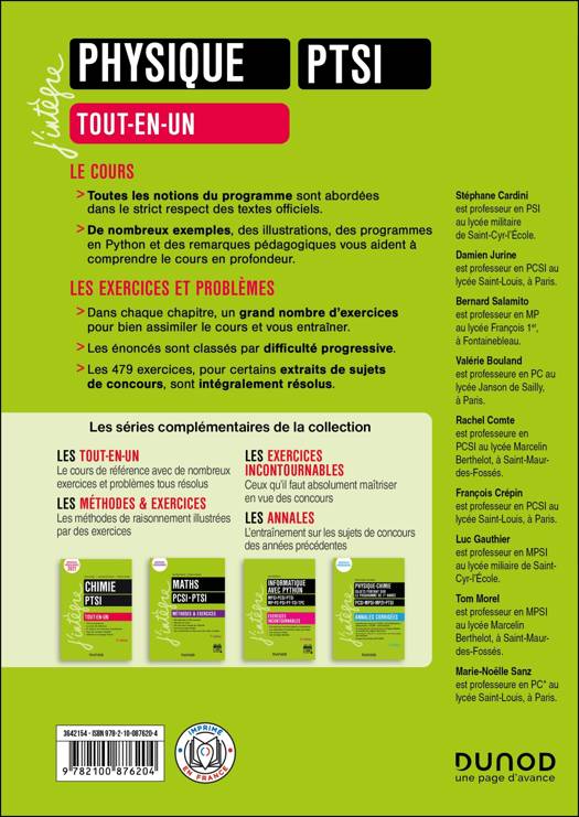 Un cours de physique "Tout-en-un" spécifiquement dédié aux élèves de la filière PTSI. Les "tout-en-un" J'intègre vous proposent le cours de référence en classes préparatoires scientifiques, ainsi que de très nombreux exercices et problèmes entièrement corrigés.