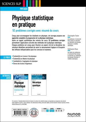Conçu pour accompagner les étudiants en physique, cet ouvrage propose une approche complète et progressive de la physique statistique. Après un rappel synthétique des notions de cours, 52 problèmes corrigés permettent l’application concrète des méthodes de la physique statistique. Chaque problème est conçu pour illustrer un aspect clé de la discipline, les solutions détaillées permettant de saisir le raisonnement logique et d’acquérir des réflexes indispensables pour les concours et examens.