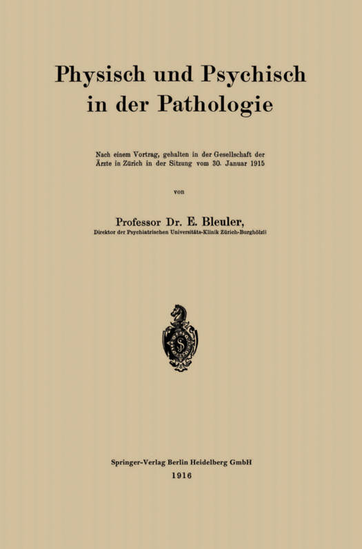 Physisch Und Psychisch in Der Pathologie