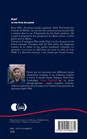 Paris 1938... En pleine envolée populaire, Edith Piaf bouleverse le destin de Thérèse. Sa voix hors du commun pousse la jeune fille à chanter dans la rue. Fréquentant les bas-fonds parisiens, elle accepte la proposition d'un producteur de cabaret véreux: se faire passer pour la Môme... Créé par la Compagnie Mascarade, Piaf, je me fous du passé est une fiction musicale. L'intrigue mêle des faits avérés, des fragments inspirés de la réalité et des parties totalement inventées. Le spectacle a vu le jour en 2021 dans une mise en scène de Loïc Fieffé. La direction musicale a été assurée par Lionel Losada.