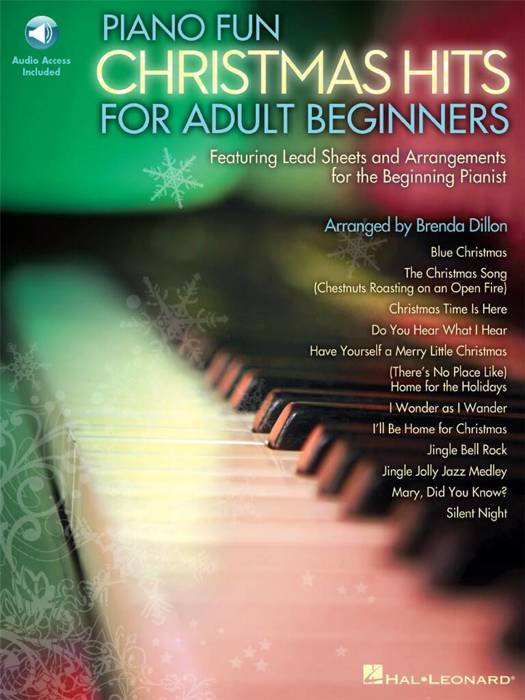 (Educational Piano Library). Piano Fun Christmas Hits for Adult Beginners is a collection of lead sheets and arrangements for the beginning pianist who has learned to read music and wants to play easy arrangements of familiar holiday favorites. The audio features beautifully orchestrated accompaniments for every song. The audio is accessed online using the unique code inside each book and can be streamed or downloaded. The audio files include PLAYBACK+, a multi-functional audio player that allows you to slow down audio without changing pitch, set loop points, change keys, and pan left or right. Songs: Blue Christmas * The Christmas Song (Chestnuts Roasting on an Open Fire) * Christmas Time Is Here * Do You Hear What I Hear? * Have Yourself a Merry Little Christmas * (There's No Place Like) Home for the Holidays * I Wonder as I Wander * I'll Be Home for Christmas * Jingle Bell Rock * Jingle Jolly Jazz Medley * Mary, Did You Know? * Silent Night. Pefect for RMM (recreational music making) programs!