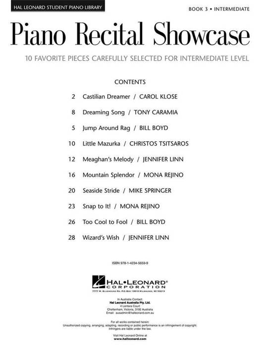 (Educational Piano Library). "What should my students play for the recital?" This brand-new series provides easy answers to this common question. For these winning collections, we've carefully selected some of the most popular and effective pieces from the Hal Leonard Student Library from early-elementary to late-intermediate levels. You'll love the variety of musical styles found in each book. Collect all five!