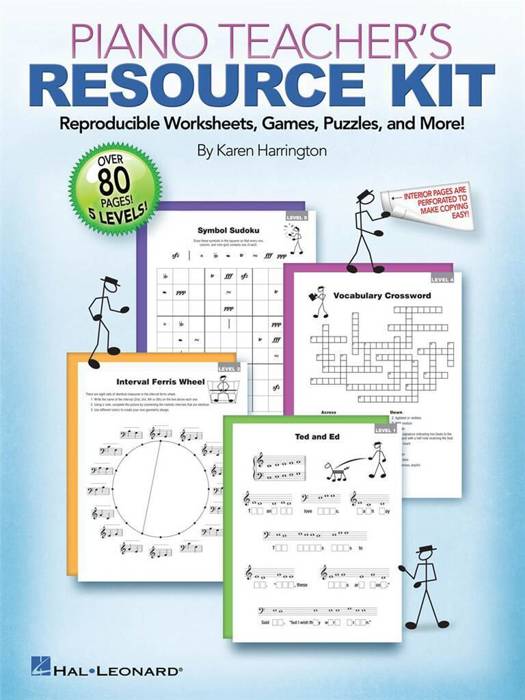 (Educational Piano Library). The reproducible pages include valuable resources for piano teachers and music teachers alike. The worksheets, puzzles and games are created in 5 levels from beginning to intermediate. Over 80 pages of worksheets on notespelling, rhythm, chords, key signatures, Sudoku games, crossword puzzles, practice charts and more! All pages are perforated for ease in copying. Perfect for group or private instruction, teachers will appreciate the wide variety of activities and well-graded worksheets that can be used over and over again.