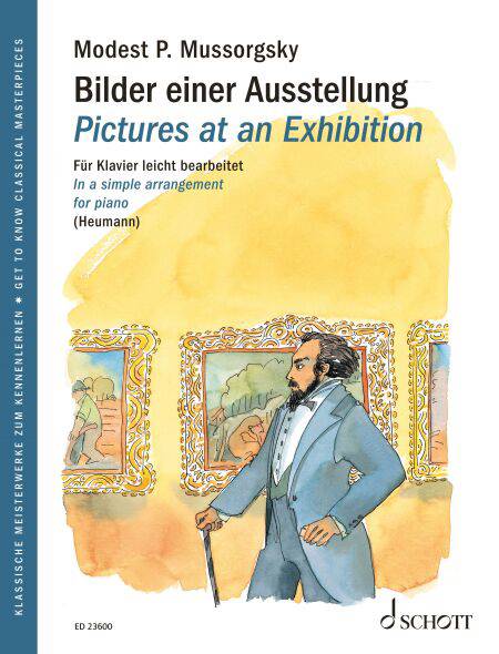 "Get to know classical masterpieces": Within this series you will find a simple arrangement for piano of one of the most popular concert works composed by Modest P. Mussorgsky , the cycle of piano pieces Pictures at an Exhibition. With explanatory texts and fully coloured illustrations, the edition is aimed at young and adult pianists. The easily playable arrangements and original pieces provide an ideal introduction to this work.