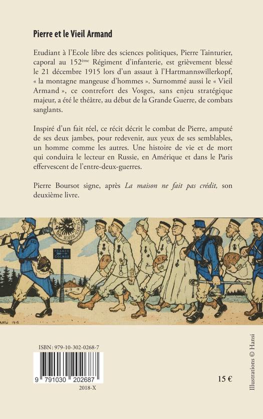 Étudiant à l'École libre des sciences politiques, Pierre Tainturier, caporal au 152ème Régiment d'infanterie, est grièvement blessé le 21 décembre 1915 lors d'un assaut à l'Hartmannswillerkopf, « la montagne mangeuse d'hommes ». Surnommé aussi le « Vieil Armand », ce contrefort des Vosges, sans enjeu stratégique majeur, a été le théâtre, au début de la Grande Guerre, de combats sanglants. Inspiré d'un fait réel, ce récit décrit le combat de Pierre, amputé de ses deux jambes, pour redevenir, aux yeux de ses semblables, un homme comme les autres. Une histoire de vie et de mort qui conduira le lecteur en Russie, en Amérique et dans le Paris effervescent de l'entre deux guerres.