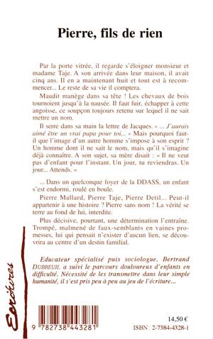 Pierre Mallard, Pierre Taje, Pierre Detil... Peut-il appartenir à une histoire ? Pierre sans nom ! La vérité se terre au fond de lui, interdite.