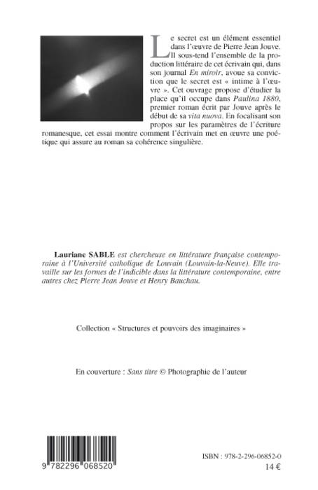 Le secret est un élément essentiel dans l'oeuvre de Pierre Jean Jouve. Il sous-tend l'ensemble de la production littéraire de cet écrivain qui, dans son journal En miroir, avoue sa conviction que le secret est "intime à l'oeuvre". En focalisant son propos sur les paramètres de l'écriture romanesque, cet ouvrage étudie la place que le secret occupe dans Paulina 1880, premier roman écrit par Jouve après le début de sa vita nuova.