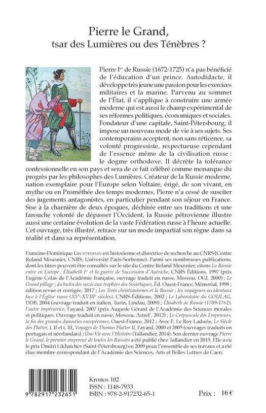 Pierre Ier de Russie n'a pas bénéficié de l'éducation d'un prince. Autodidacte, il développe très jeune une passion pour les exercices militaires et la marine. Parvenu au sommet de l'État, il s'applique à construire une armée moderne qui est aussi le champ expérimental de ses réformes politiques, économiques et sociales. Fondateur d'une capitale, Saint-Pétersbourg, il impose son nouveau mode de vie progressiste, respectueux cependant de l'essence même de la civilisation russe avec le dogme orthodoxe. Créateur de la Russie moderne, Pierre Le Grand n'a cessé de susciter des jugements antagonistes, en particulier durant son séjour en France.