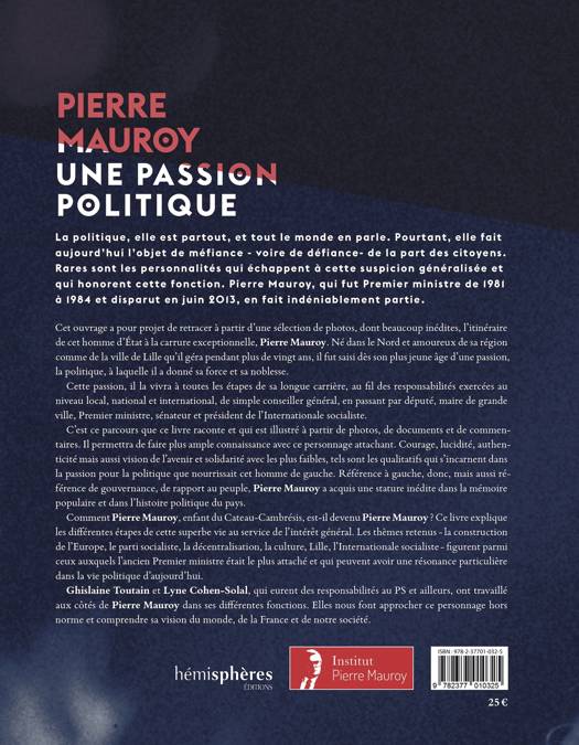 Cet ouvrage retrace à partir de nombreuses photos, dont beaucoup inédites, l'itinéraire de cet homme d'Etat à la carrure exceptionnelle que fut Pierre Mauroy (1928-2013). Né dans le Nord et amoureux de sa région comme de la ville de Lille qu'il géra pendant plus de vingt ans, il fut saisi dès son plus jeune âge d'une passion, la politique, à laquelle il a donné sa force et sa noblesse. Cette passion, il la vivra à toutes les étapes de sa longue carrière, au fil des responsabilités exercées au niveau local, national et international, de simple conseiller général, en passant par député, maire, Premier ministre, sénateur et président de l'Internationale socialiste.