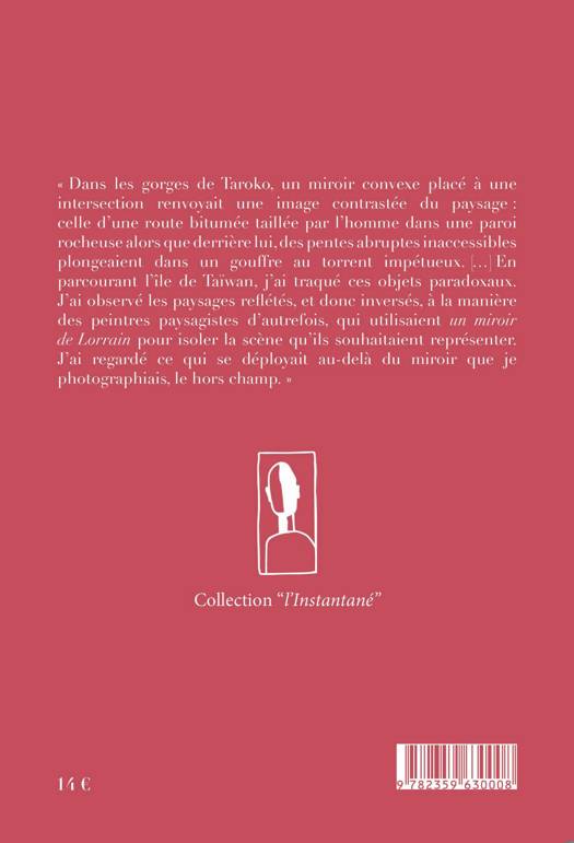 L'auteure découvre au détour d'une route en montagne à Taïwan, un miroir convexe qui reflète l'image d'un paysage inversé.Il montre un fragment du paysage auquel le regardeur tourne le dos. Il le cadre en éliminant tout le contexte environnant. Le miroir superpose deux paysages situés de part et d'autre de l'observateur, tout en ignorant son propre arrière-plan, dont il masque une portion. Le miroir montre et dissimule tout à la fois.. Elle va alors parcourir l'île à la recherche de ces objets et de leurs reflets paradoxaux, les photographiant. Elle va alors décrire ce qui se déploie au-delà de miroir, le hors champ.