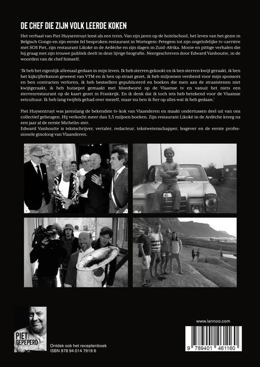 Het verhaal van Piet Huysentruyt leest als een trein. Van zijn jaren op de hotelschool, het leven van het gezin in Belgisch Congo en zijn eerste fel besproken restaurant in Wortegem-Petegem tot zijn ongelofelijke tv-carrière met SOS Piet en zijn restaurant Likoké in de Ardèche en zijn dagen in Zuid-Afrika. Mooie en pittige verhalen die hij graag met zijn trouwe publiek deelt in deze lijvige biografie.