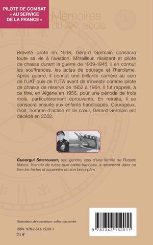 Breveté pilote en 1938, Gérard Germain consacra toute sa vie à l'aviation. Mitrailleur, résistant, il fût pilote de chasse durant la guerre de 1939-1945. Après guerre, il continua au sein de l'UAT puis de l'UTA avant de s'investir comme pilote de chasse de réserve de 1952 à 1964. Il fut rappelé, à ce titre, en Algérie en 1956, pour une période de trois mois. En retraite, il se consacra ensuite aux enfants handicapés et mourut en 2002.
