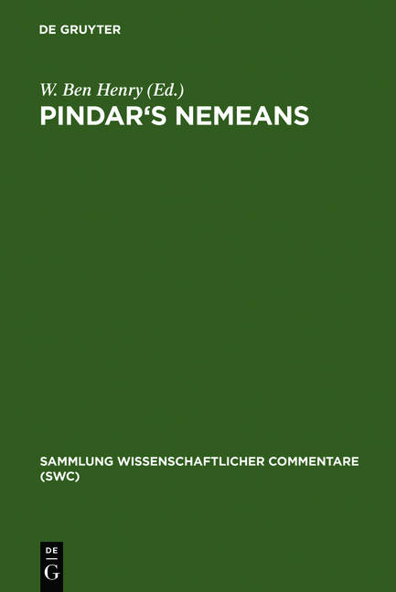 Dieses Werk bietet die Texte mit Einleitung und Kommentar von fünf Oden Pindars. Drei davon feiern Siege, die von äginetischen Athleten an den Nemeischen Spielen errungen wurden (4, 6 und 8). Die anderen zwei Oden gehören zum Anhang des Buches: Nem. 10, für den argivischen Ringkämpfer Theaios und seine Familie, und Nem. 11, auf den Prytanen Aristagoras aus Tenedos. In den Kommentaren wird sowohl über Probleme der Metrik und Textkritik als auch über den Stil, den Mythos und den historischen Hintergrund diskutiert.