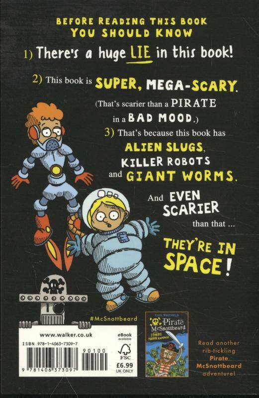 The terrible Pirate McSnottbeard is BACK - and this time he's brought alien slug monsters. Forced to rescue their parents once more, Emilie and her brother Will blast off for an adventure in space. Faced with dragons, robots, vegetables and a battle inside a computer game, still nothing can prepare them for the most dreadful thing of all: Pirate McSnottbeard's singing... The second book in Paul Whitfield's Pirate McSnottbeard series, fully illustrated and packed with laugh-out-loud jokes.