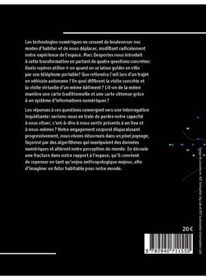 Les technologies numériques ne cessent de bouleverser nos modes d’habiter et de nous déplacer, modifiant radicalement notre expérience de l’espace. Marc Desportes nous introduit à cette transformation en partant de quatre questions concrètes : Quels repères utilise-t-on quand on se laisse guider en ville par son téléphone portable? Que retiendra l’oeil lors d’un trajet en véhicule autonome ? En quoi diffèrent la visite concrète et la visite virtuelle d’un même bâtiment ? Lit-on de la même manière une carte traditionnelle et une carte obtenue grâce à un système d’informations numériques ? Les réponses à ces questions convergent vers une interrogation inquiétante : serions-nous en train de perdre notre capacité à nous situer, c’est-à-dire à nous sentir présents à un lieu et à nous-mêmes ? Notre engagement corporel disparaissant progressivement, nous vivons désormais dans un pixel paysage, façonné par des algorithmes qui manipulent des données numériques et altèrent notre perception du monde. En découle une fracture dans notre rapport à l’espace, qu’il convient de repenser en tant qu’enjeu anthropologique majeur, afin d’imaginer un futur habitable pour notre monde.