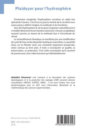 D'extension marginale, l'hydrosphère constitue un objet très spécial de l'univers. C'est là où se joue le miracle de la vie dont nous avons peine à définir l'origine, la multitude et les frontières. Hors de l'hydrosphère, la vie ne peut s'organiser naturellement ni s'installer librement d'une manière autonome. S'ensuit un plaidoyerressenti comme un drame de la méthode face à l'incertitude du climat. Le réchauffement climatique se manifeste par une modification de cycle de l'eau et des disparités hydriques exacerbées. La quantité d'eau sur la Planète reste une constante largement prospectée, sinon connue au km3 près. Il reste à reconquérir sa qualité, sa préservation, sa protection. C'est cette reconquête qu'il convient de promouvoir, tant collectivement qu'individuellement.