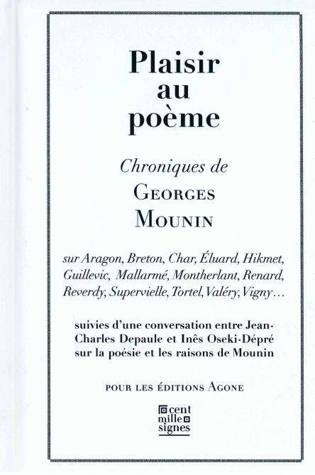 « Quand on aime la poésie, au bout d'un certain temps, la seule façon tolérable d'en parler, c'est d'en parler avec précision, quels que soient les risques. Tout finit par valoir mieux que la Tour de Babel assourdissante où, comme à la corbeille d'une Bourse étrange, sont chaque jour hurlées péremptoirement toutes les opinions sur la Poésie majuscule. Pourquoi “glorieuse dans les bras du soleil” ? Là aussi, on voit avant de comprendre – il faut voir avant de comprendre et se laisser mener par les mots vers l'image. Une image de femme portée dans les bras du soleil, une vision de rayons divergents, de bras tendus offrants. C'est une image glorieuse, comme dans les tableaux celle des personnages entourés de lumière. C'est seulement l'image radieuse de femme éblouissante qui a empli les yeux d'Éluard. Et la preuve, c'est qu'il revient sur cette image, insatisfait jusqu'à ce qu'elle ait atteint la plénitude expressive adéquate à la vision qu'il gardait intérieurement : Sans songer à d'autres soleils Que celui qui brille en mes bras dira-t-il en 1940. Et c'est bien la même image. Il me semble qu'il a finalement su se délivrer de son éblouissement dans ce vers-ci, le plus accompli : Tu portes dans tes bras les branches du soleil. » Réédition de textes parus en 1993 dans la revue Agone (et pour la première fois entre 1952 et 1958) dans Les Cahiers du Sud), ces quinze chroniques parcourent les écrits de Guillaume Apollinaire, Louis Aragon, André Breton, René Char, François Dodat, Paul Éluard, Nazim Hikmet, Victor Hugo, Stéphane Mallarmé, Henry de Montherlant, Saint-Pol Roux, Gaston Puel, Eugène Guillevic, Pierre Reverdy, Jules Supervielle, Paul Valéry, Alfred de Vigny, etc. Ces leçons de précision poétique sont suivies d'un dialogue entre un poète et une traductrice, qui reviennent, un demi-siècle plus tard, sur la poésie vue par le linguiste et sémiologue, militant communiste et résistant Louis Leboucher, dit Georges Mounin (1910-1993). »