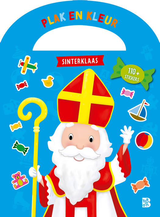 Twee activiteiten gecombineerd in één boek rond het thema Sinterklaas: plakken en kleuren. Je kind kan van elke tekening het kleurvoorbeeld zoeken op het stickervel en dan de tekening inkleuren. Met de extra stickers kunnen de tekeningen nog verder versierd worden. Dankzij het handige handvat kan je kind zijn sintkoffertje overal mee naartoe nemen!