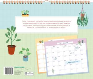 Notez chaque mois vos rendez-vous, excursions ou autres projets dans ce beau planificateur. Grâce aux 12 aperçus mensuels, vous aurez ainsi, en un coup d'oeil, votre planning pour toute l'année. Un outil pratique et esthétique, à accrocher bien en évidence dans la maison ! Reliure spirale