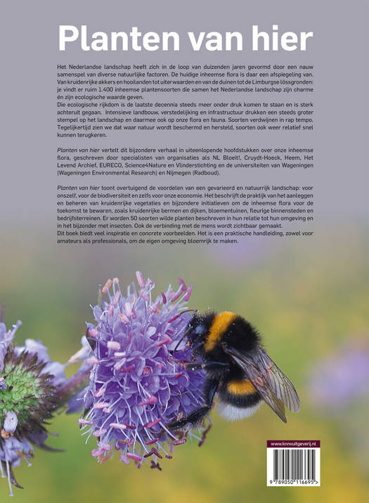 ‘Planten van hier’ bundelt kennis en inspiratie rondom onze inheemse flora en toont overtuigend de voordelen van een gevarieerd en natuurrijk groen landschap: voor onszelf, de biodiversiteit en onze economie. Dit rijk geïllustreerde boek biedt veel inspiratie en concrete voorbeelden voor burgers, beheerders en grondeigenaren, om de eigen omgeving bloemrijk te maken.