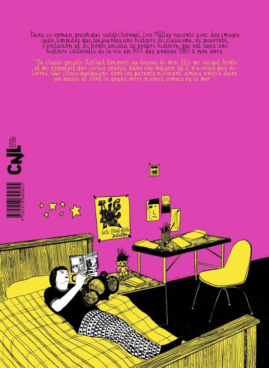 Plouquette, bouseuse, cas soc'⦠autant d'insultes qu'a entendues la personnage principale d'Eva Müller toute son adolescence de la part de jeunes de son âge. Des insultes par lesquelles, n'étant pas issue d'un milieu privilégié, elle a été exclue, des insultes censées la remettre à sa place. Dans ce roman graphique autofictionnel, elle raconte son histoire et l'histoire de sa famille avec des images limpides et puissantes, d'une diversité esthétique étonnante. Les origines paysannes de ses grands-parents, le milieu ouvrier ouest-allemand de ses parents, son enfance dans un milieu pauvre et non éduqué, la honte sociale, l'odeur de l'huile à frire, les vêtements bon marché avec des écussons ridicules, l'éloignement de son milieu d'origine et, finalement, son émancipation en tant qu'artiste — même si le serpent du doute, malgré le succès, ne la laisse jamais en paix.