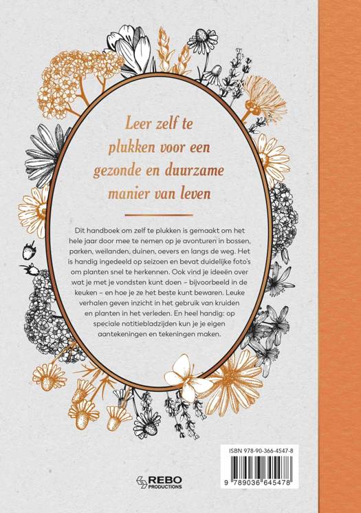 Dit handboek om zelf te plukken is gemaakt om het hele jaar door mee te nemen op je avonturen in bossen, parken, weilanden, duinen, oevers en langs de weg. Het is handig ingedeeld op seizoen en bevat duidelijke foto's om planten snel te herkennen. Ook vind je ideeën over wat je met je vondsten kunt doen – bijvoorbeeld in de keuken – en hoe je ze het beste kunt bewaren. Leuke verhalen geven inzicht in het gebruik van kruiden en planten in het verleden. En heel handig: op speciale notitiebladzijden kun je je eigen aantekeningen en tekeningen maken.