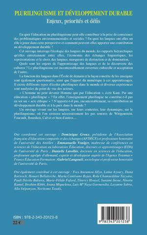 En quoi l'éducation au plurilinguisme peut-elle contribuer à la prise de conscience des problématiques environnementales et sociales ? En quoi les langues ont-elles un rôle à jouer dans cette perspective et comment peuvent-elles apporter une contribution au développement durable ? Cet ouvrage interroge l'écologie des langues du monde, les rapports hiérarchiques qu'elles entretiennent entre elles, l'économie des échanges linguistiques, les représentations et le choix des langues, marqueurs de distinction et de domination. Le plurilinguisme est incontestablement ouverture culturelle et acceptation de l'autre. La fonction des langues dans l'École de demain et la façon concrète de les enseigner sont également questionnées.