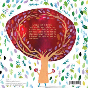 Chaque nuit, le terrible vent souffle sans relâche sur le flamboyant. Puis le jour se lève, mais l’arbre ne dit mot. Le hibou aux grands yeux a tout vu. Il aimerait bien venir en aide au flamboyant, mais comment ? À travers ce récit tout en poésie, Julia Billet aborde les thèmes difficiles de la maltraitance et de la parole qui libère, et explique l’importance de se sentir en confiance et protégé pour demander de l’aide.