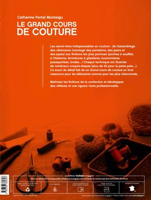 Les savoir-faire indispensables en couture : de l’assemblage des vêtements (montage des pantalons, des jeans et des jupes) aux finitions les plus pointues (poches à soufflet, à l’italienne, fermetures à glissières, boutonnières passepoilées, brides…) Chaque technique est illustrée de nombreux croquis étapes (plus de 50 pour la patte polo…). Ce souci du détail fait de ce Grand cours de couture un livre ressource pour les débutants comme pour les plus chevronnés. Maîtrisez les finitions de la confection et développez des réflexes et une rigueur toute professionnelle.