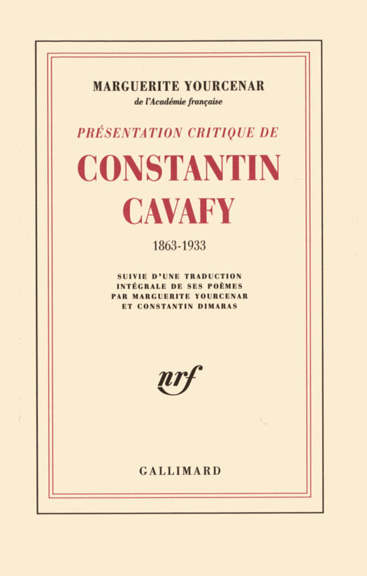 "Cavafy est l'un des poètes les plus célèbres de la Grèce moderne ; c'est aussi l'un des plus grands, le plus subtil en tout cas, le plus neuf peut-être, le plus nourri pourtant de l'inépuisable substance du passé. De parents grecs, originaires de Constantinople, il naquit en 1863 à Alexandrie d'Égypte. Il occupa longtemps dans cette ville un poste d'employé, puis de chef de bureau, au ministère de l'Irrigation ; il mourut à Alexandrie en 1933." Ainsi s'ouvre la "Présentation critique de C. Cavafy" par Marguerite Yourcenar, qui précède la première traduction intégrale en français de l'oeuvre du grand poète, traduction que l'on doit à Marguerite Yourcenar elle-même et à l'écrivain grec Constantin Dimaras. À la suite de cette "Présentation critique" dont chaque ligne serait à citer et qui inspire au lecteur un désir très vif d'aborder l'oeuvre de Cavafy, nous découvrons d'admirables poèmes en prose, et, grâce à l'art de Marguerite Yourcenar, un nouveau et très grand poète en français.